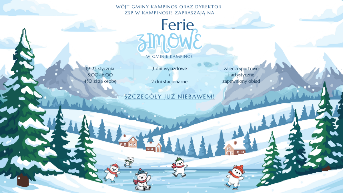Wójt Gminy Kampinos oraz Dyrektor Zespołu Szkolno-Przedszkolnego w Kampinosie zapraszają na ferie zimowe w Gminie Kampinos!