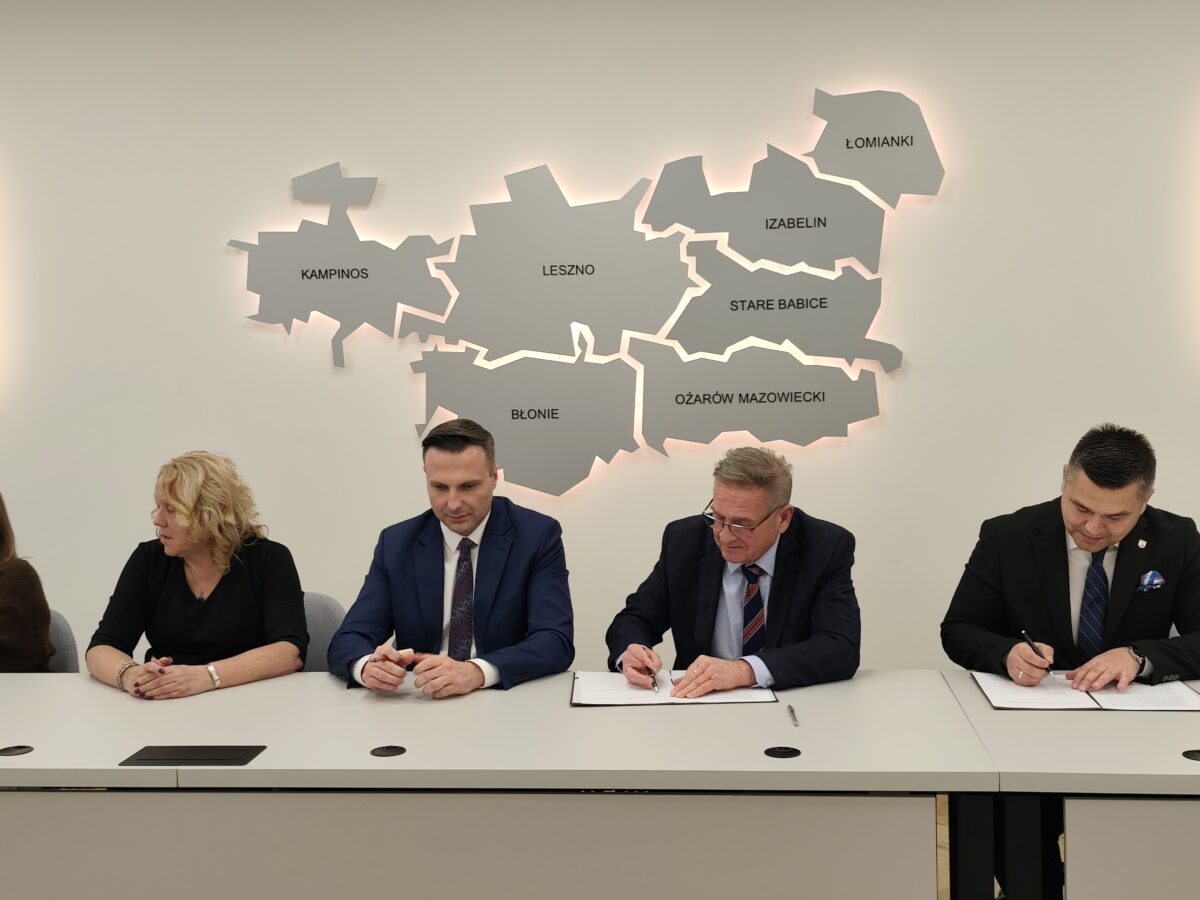 Dzisiaj w siedzibie Starostwa Powiatu Warszawskiego Zachodniego został podpisany list intencyjny, dotyczący budowy zbiornika retencyjnego na rzece Utracie, pomiędzy Gminą Kampinos, reprezentowaną przez Wójta Piotra Grzelaka, Powiatem Warszawskim Zachodnim, reprezentowanym przez Starostę Romualda Reszkę i Członka Zarządu Wojciecha Białasa, Powiatem Sochaczewskim reprezentowanym przez Starostę Jolantę Gontę oraz Wicestarostę Annę Pawłowską oraz Gminą Teresin, reprezentowaną przez Wójta Marka Olechowskiego, przy kontrasygnacie Skarbników.