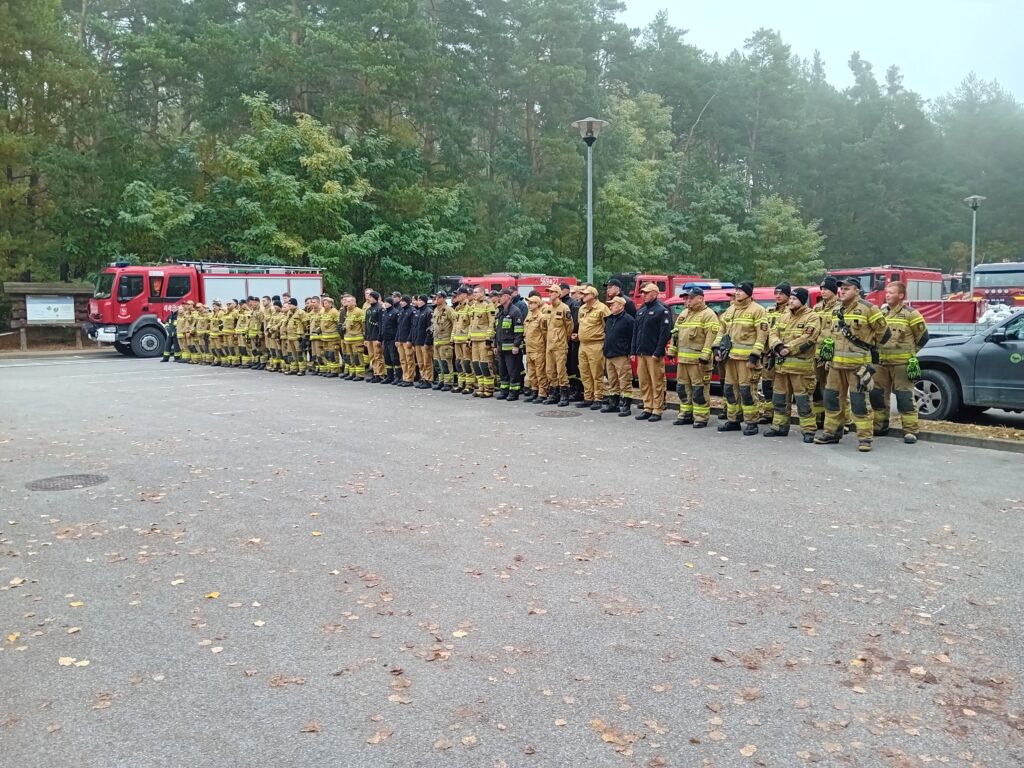 Komenda Powiatowa Państwowej Straży Pożarnej w Powiecie Warszawskich Zachodnim zorganizowała dzisiaj na terenie Kampinoskiego Parku Narodowego ćwiczenia ratowniczo-gaśnicze oraz sztabowe przy udziale sił i środków Kompanii Ratowniczej Grodzisk Mazowiecki.