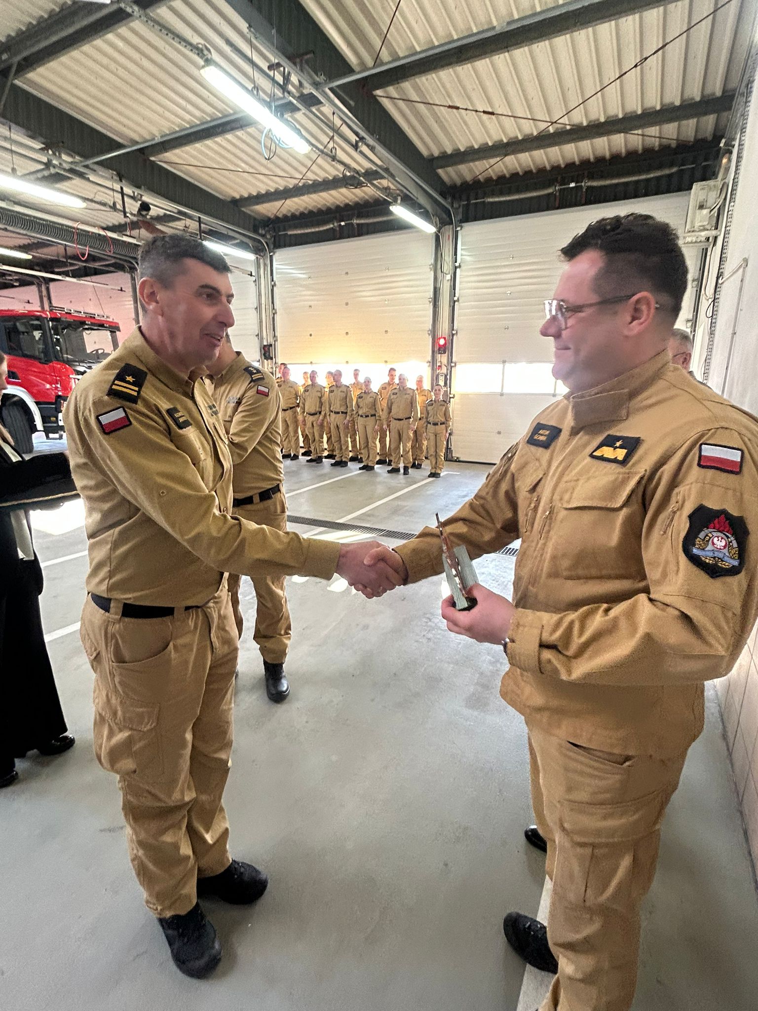 Podczas uroczystej zbiórki przekazano kluczyki do nowego ciężkiego samochodu ratowniczo-gaśniczego GCBA 7/52 oraz pojazdu typu mikrobus.