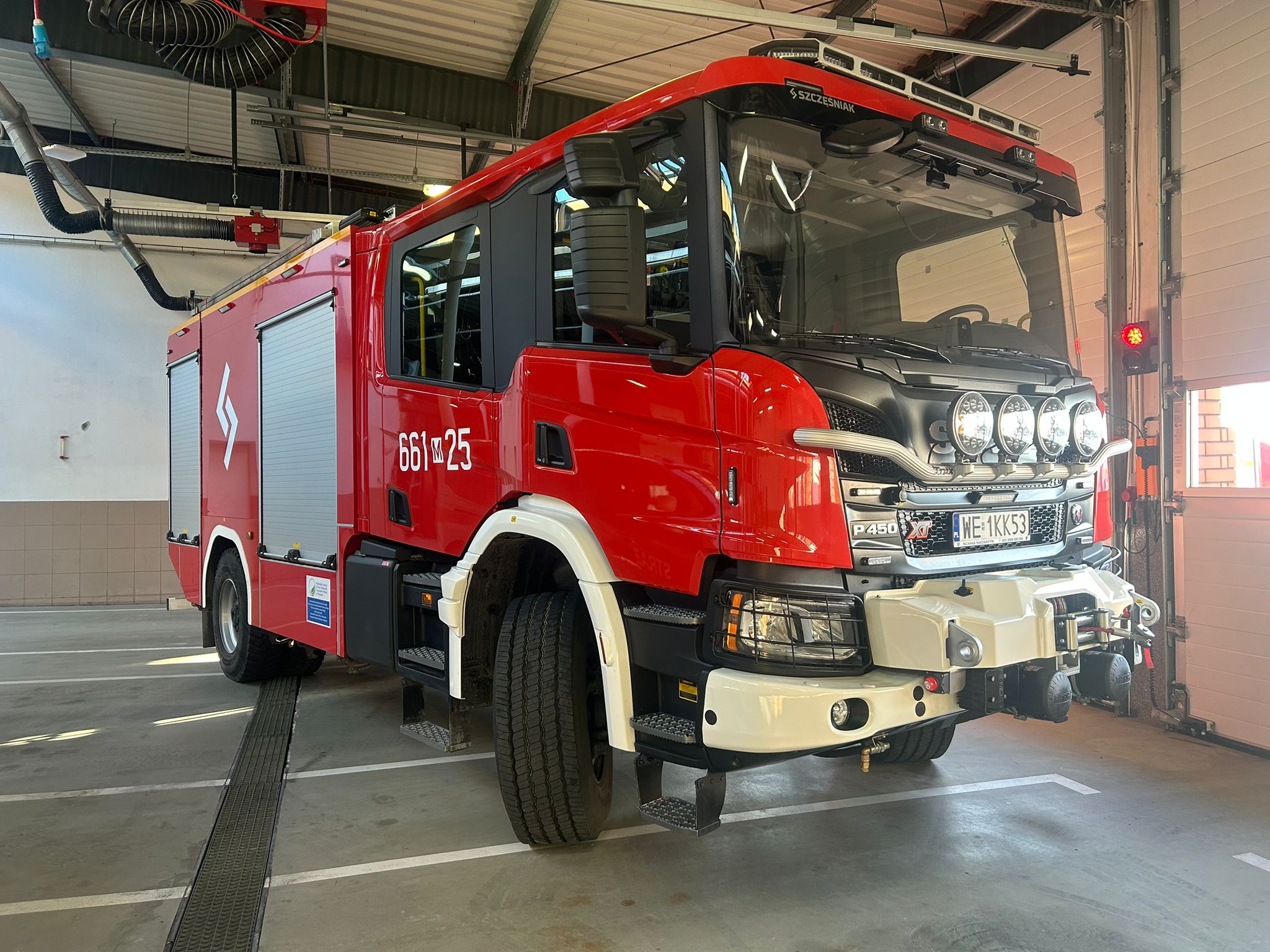 Zakup samochodu GCBA Scania P450 4×4 7/52, zrealizowano przy wsparciu finansowym: Starostwa Powiatowego Powiatu Warszawskiego Zachodniego, Gminy Błonie oraz środków z Mazowieckiej Komendy Wojewódzkiej PSP.